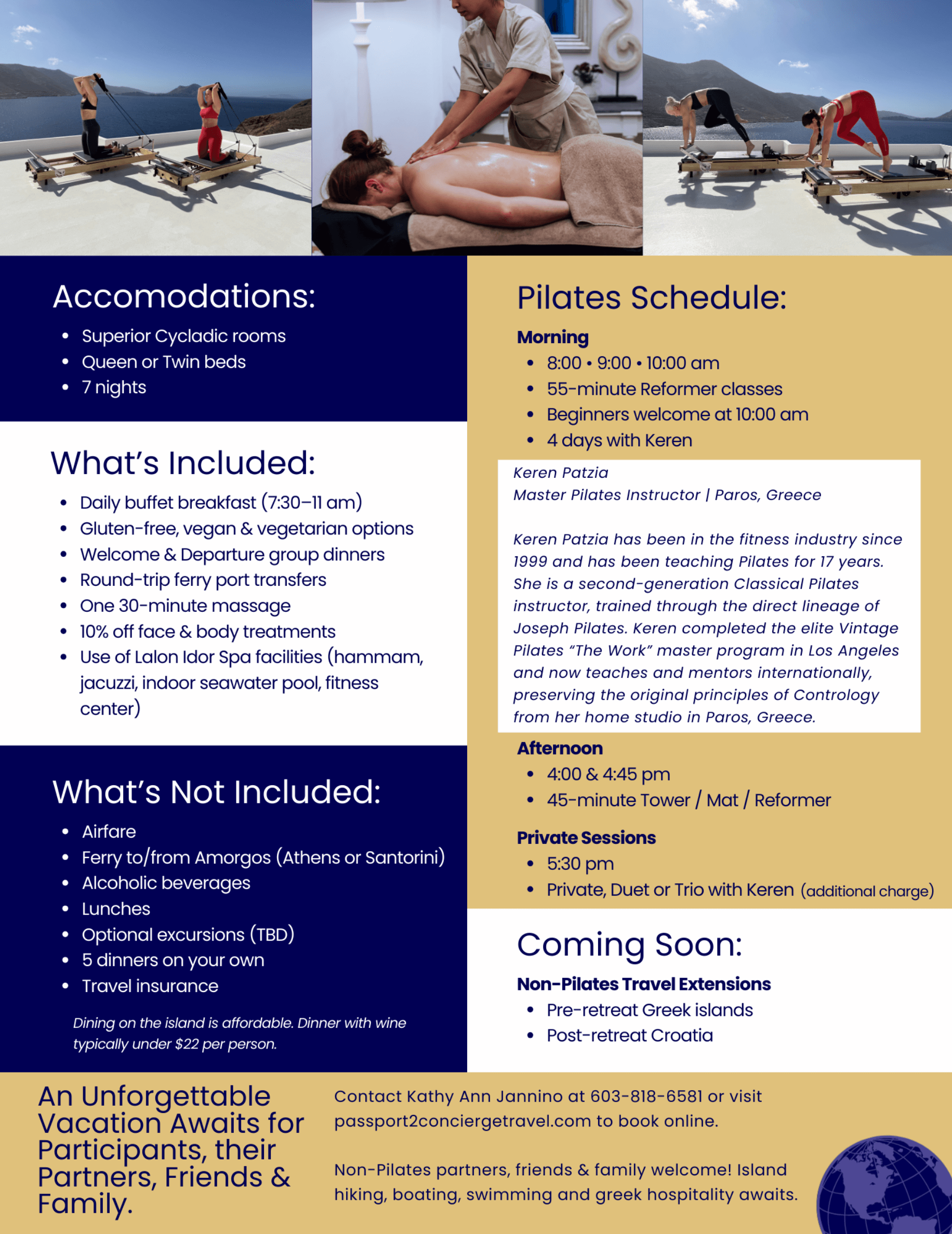 Back to All Events Pilates Retreat in Greece Sunday 12 September 2027 10:00 Sunday 19 September 2027 18:00 Athens Greece (map) Google Calendar ICS